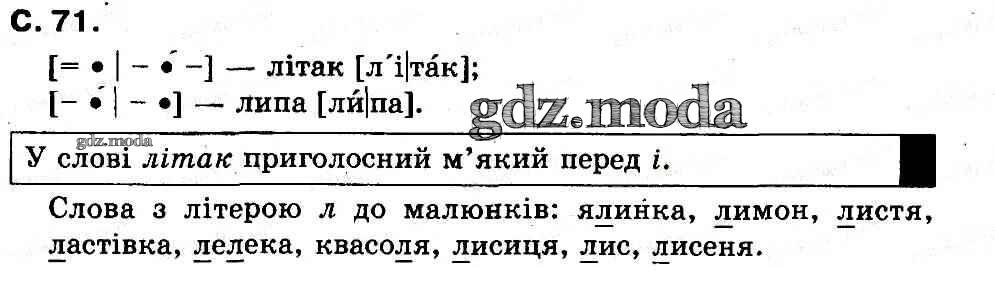 ГДЗ решение к заданию № 71 Украинский язык 1 класс букварь Захарийчук Грамота 2012 бесплатно на гдз.мода!