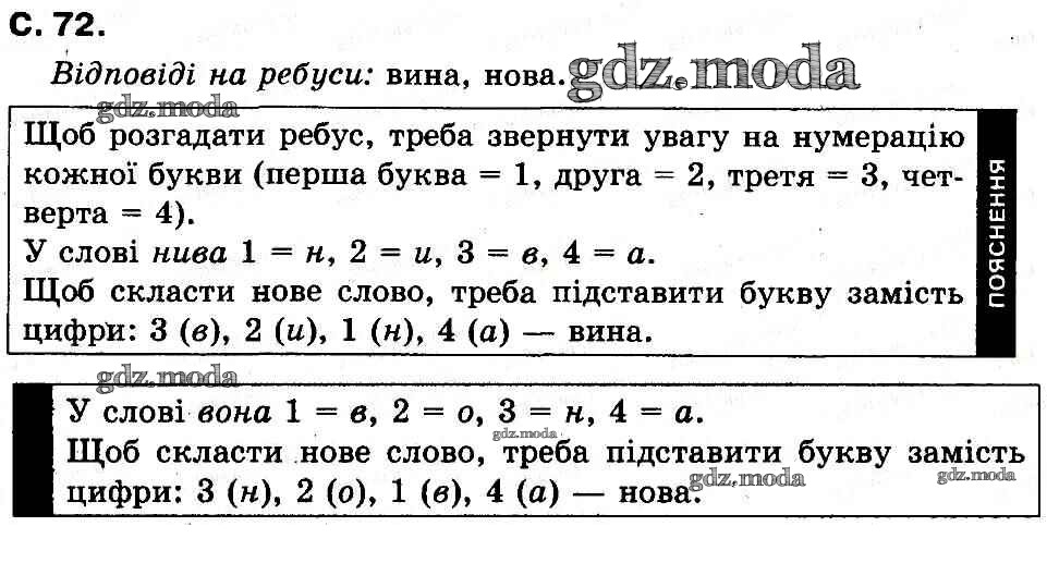ГДЗ решение к заданию № 72 Украинский язык 1 класс букварь Захарийчук Грамота 2012 бесплатно на гдз.мода!