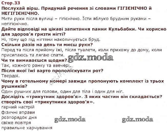 ГДЗ решение к заданию № 33 Я познаю мир 1 класс Грущинская Орiон 2018 Часть 1, Часть 2 бесплатно на гдз.мода!