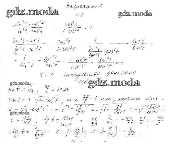 ГДЗ решение к заданию № вариант 2 Алгебра и начала математического анализа 10 класс Самостоятельные работы Александрова Л.А. Мнемозина 2017 Базовый уровень ФГОС бесплатно на гдз.мода!