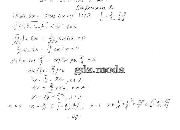 ГДЗ решение к заданию № вариант 2 Алгебра и начала математического анализа 10 класс Самостоятельные работы Александрова Л.А. Мнемозина 2017 Базовый уровень ФГОС бесплатно на гдз.мода!