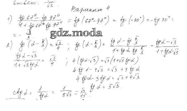 ГДЗ решение к заданию № вариант 4 Алгебра и начала математического анализа 10 класс Самостоятельные работы Александрова Л.А. Мнемозина 2017 Базовый уровень ФГОС бесплатно на гдз.мода!