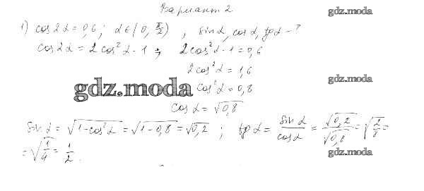 ГДЗ решение к заданию № вариант 2 Алгебра и начала математического анализа 10 класс Самостоятельные работы Александрова Л.А. Мнемозина 2017 Базовый уровень ФГОС бесплатно на гдз.мода!