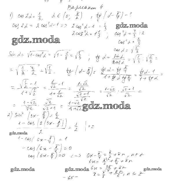 ГДЗ решение к заданию № вариант 4 Алгебра и начала математического анализа 10 класс Самостоятельные работы Александрова Л.А. Мнемозина 2017 Базовый уровень ФГОС бесплатно на гдз.мода!