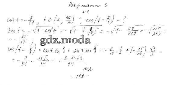 ГДЗ решение к заданию № вариант 3 Алгебра и начала математического анализа 10 класс Самостоятельные работы Александрова Л.А. Мнемозина 2017 Базовый уровень ФГОС бесплатно на гдз.мода!