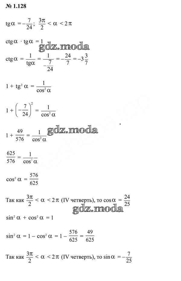 ОТВЕТ на задание № 1.128 Учебник по Алгебре 10 класс Арефьева