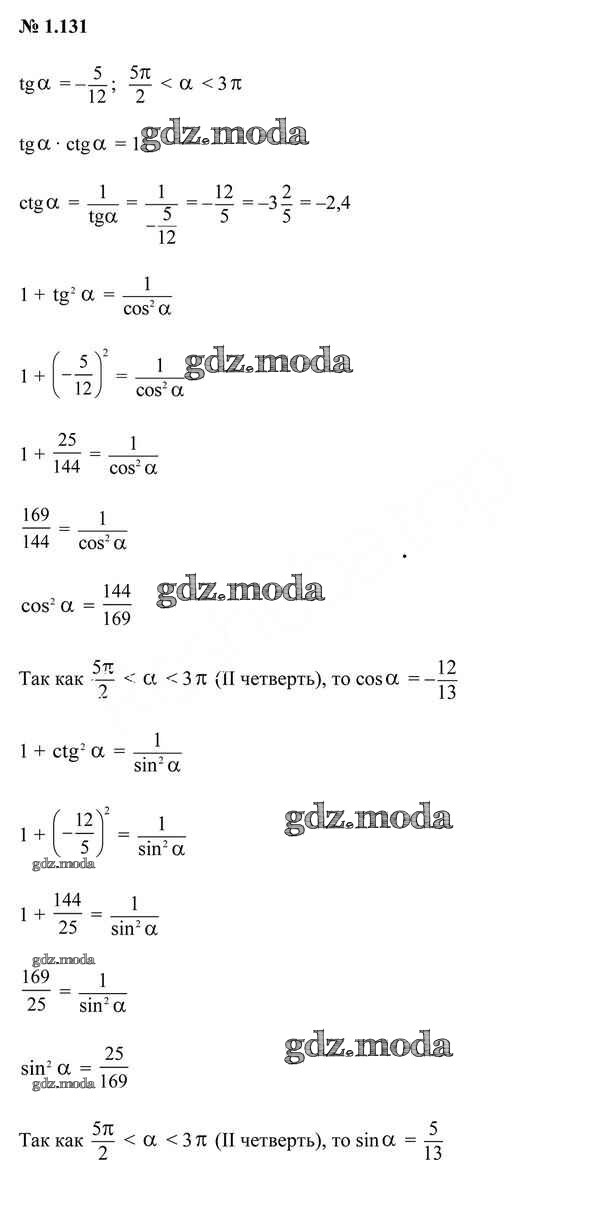 ОТВЕТ на задание № 1.131 Учебник по Алгебре 10 класс Арефьева