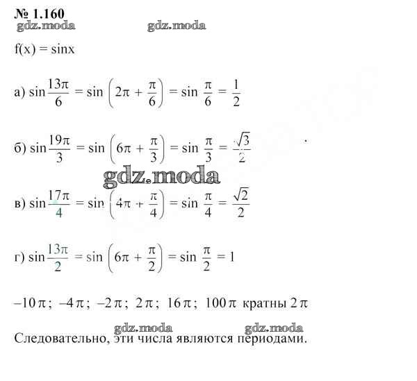 ОТВЕТ на задание № 1.160 Учебник по Алгебре 10 класс Арефьева