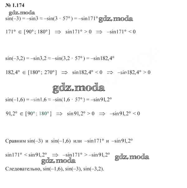 ОТВЕТ на задание № 1.174 Учебник по Алгебре 10 класс Арефьева