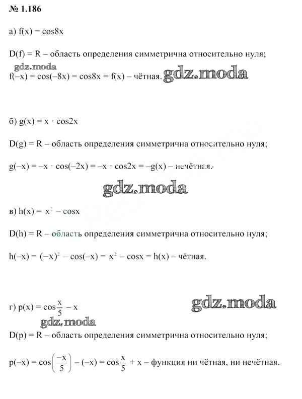 ОТВЕТ на задание № 1.186 Учебник по Алгебре 10 класс Арефьева