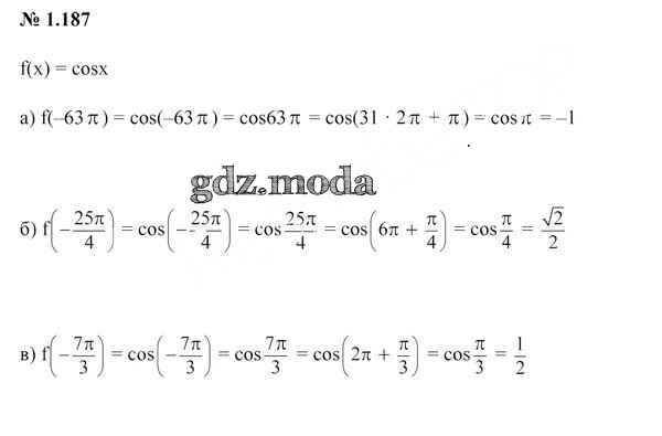 ОТВЕТ на задание № 1.187 Учебник по Алгебре 10 класс Арефьева