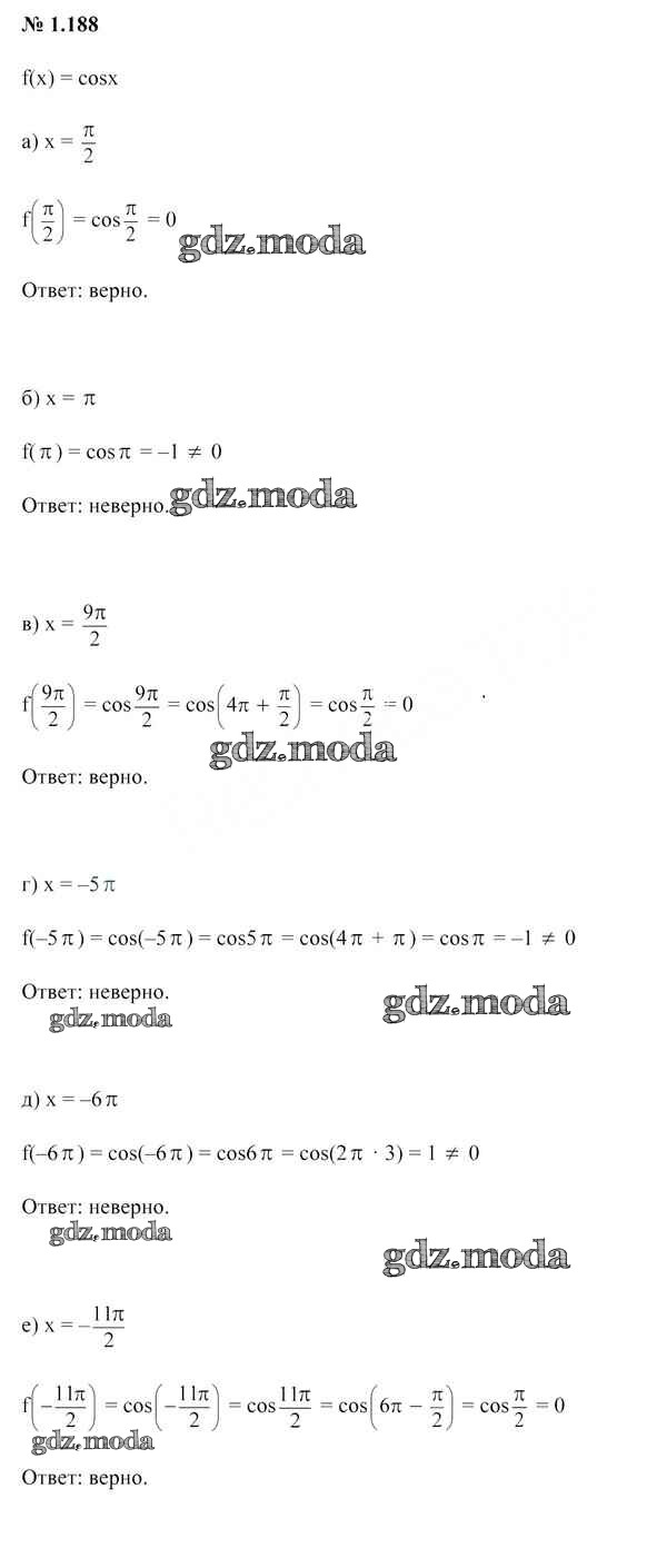 ОТВЕТ на задание № 1.188 Учебник по Алгебре 10 класс Арефьева