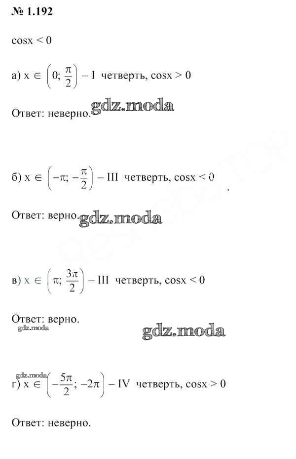 ОТВЕТ на задание № 1.192 Учебник по Алгебре 10 класс Арефьева
