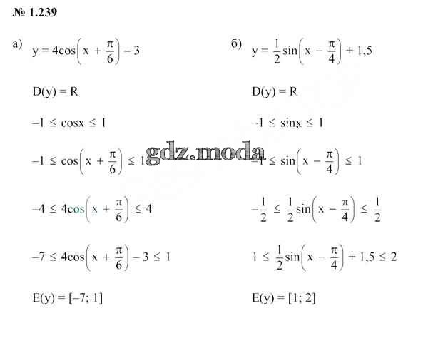 ОТВЕТ на задание № 1.239 Учебник по Алгебре 10 класс Арефьева