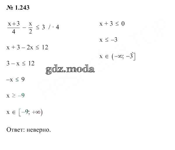 ОТВЕТ на задание № 1.243 Учебник по Алгебре 10 класс Арефьева