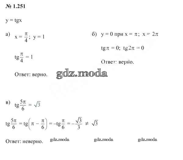 ОТВЕТ на задание № 1.251 Учебник по Алгебре 10 класс Арефьева