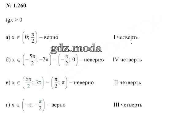 ОТВЕТ на задание № 1.260 Учебник по Алгебре 10 класс Арефьева
