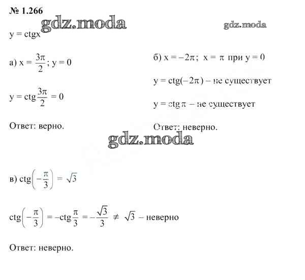 ОТВЕТ на задание № 1.266 Учебник по Алгебре 10 класс Арефьева