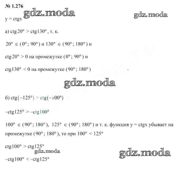 ОТВЕТ на задание № 1.276 Учебник по Алгебре 10 класс Арефьева