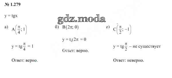 ОТВЕТ на задание № 1.279 Учебник по Алгебре 10 класс Арефьева