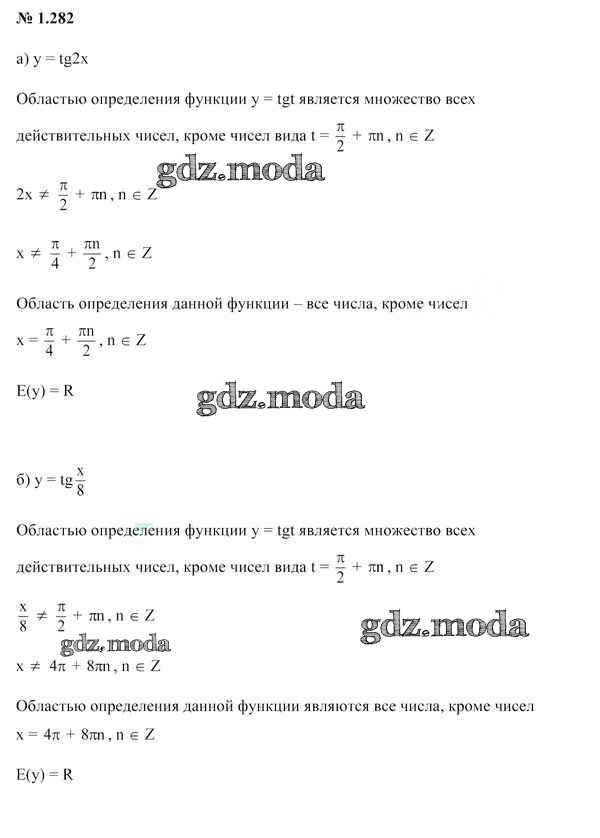 ОТВЕТ на задание № 1.282 Учебник по Алгебре 10 класс Арефьева