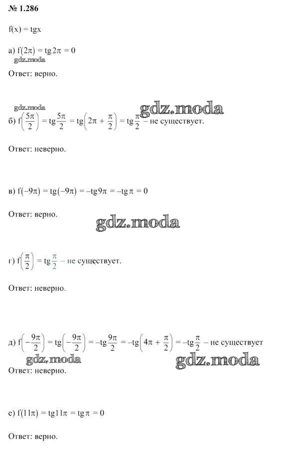 ОТВЕТ на задание № 1.286 Учебник по Алгебре 10 класс Арефьева