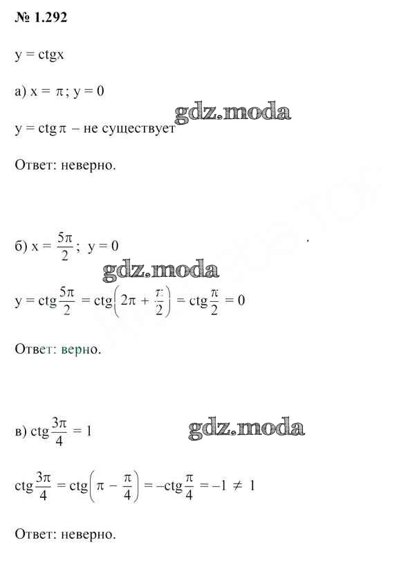 ОТВЕТ на задание № 1.292 Учебник по Алгебре 10 класс Арефьева