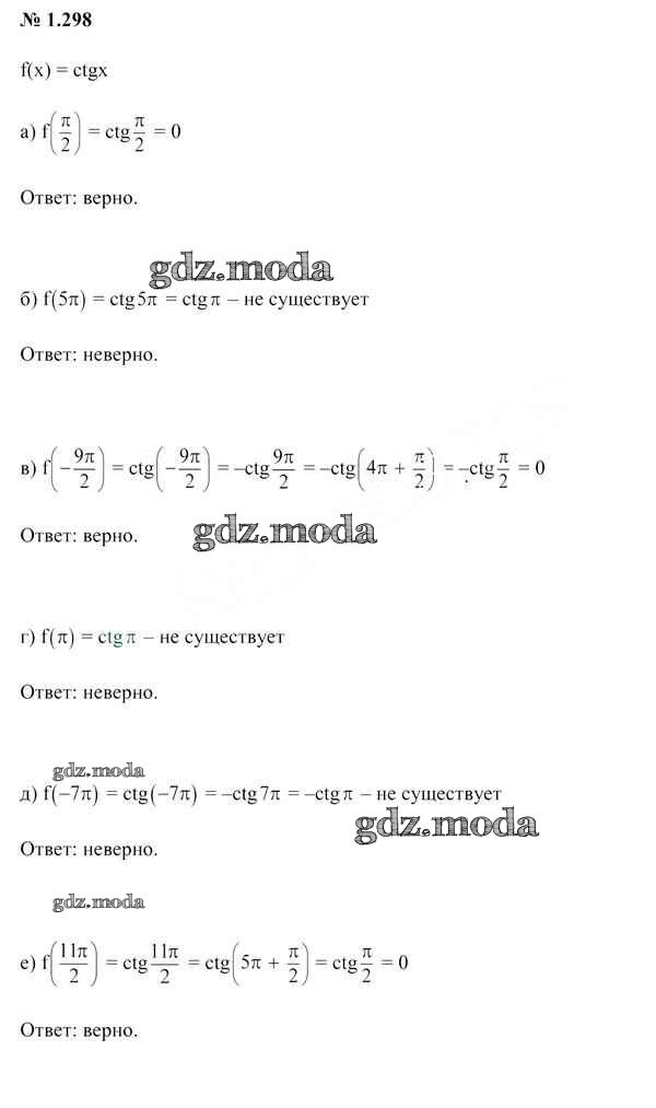 ОТВЕТ на задание № 1.298 Учебник по Алгебре 10 класс Арефьева