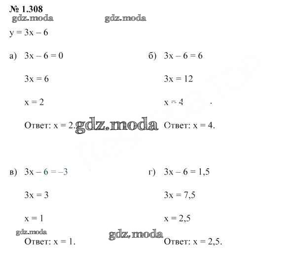 ОТВЕТ на задание № 1.308 Учебник по Алгебре 10 класс Арефьева