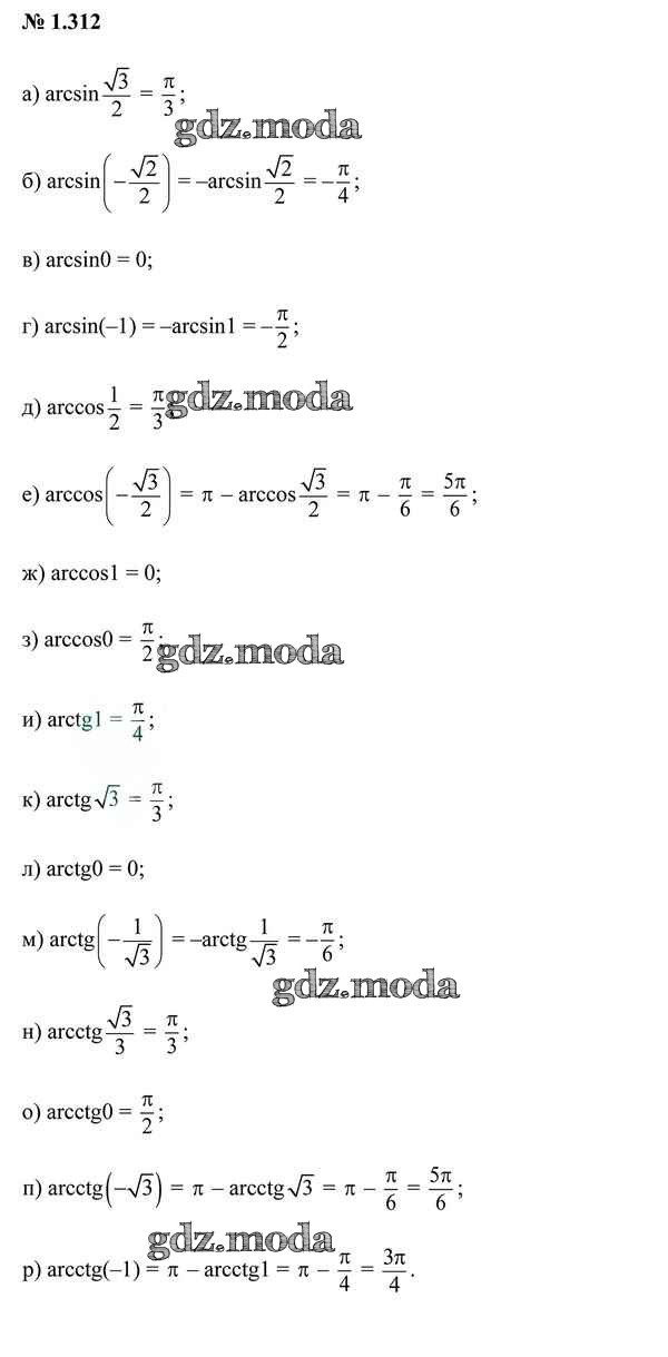 ОТВЕТ на задание № 1.312 Учебник по Алгебре 10 класс Арефьева