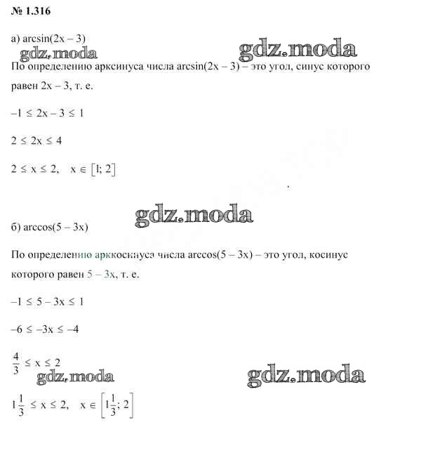 ОТВЕТ на задание № 1.316 Учебник по Алгебре 10 класс Арефьева