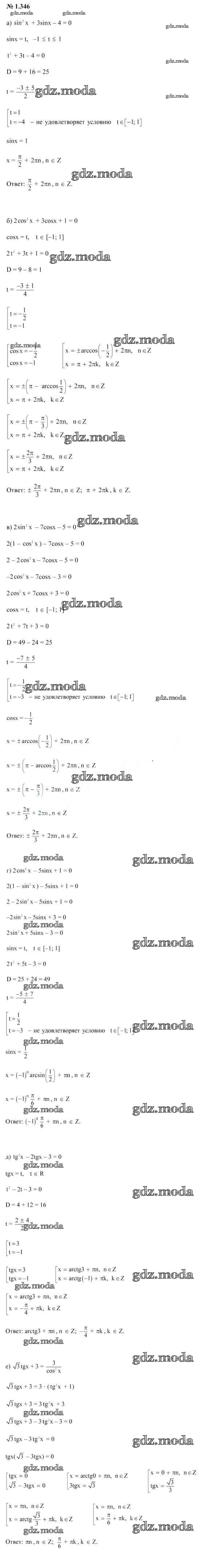 ОТВЕТ на задание № 1.346 Учебник по Алгебре 10 класс Арефьева