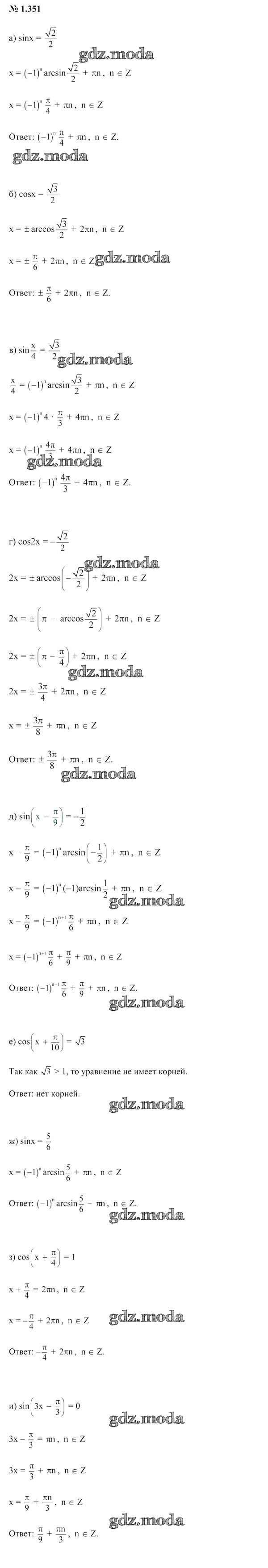 ОТВЕТ на задание № 1.351 Учебник по Алгебре 10 класс Арефьева