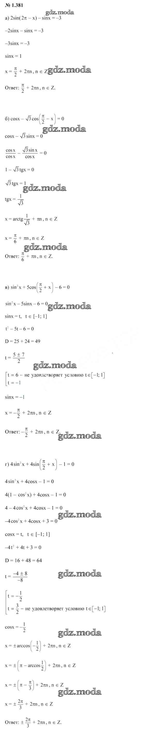ОТВЕТ на задание № 1.381 Учебник по Алгебре 10 класс Арефьева