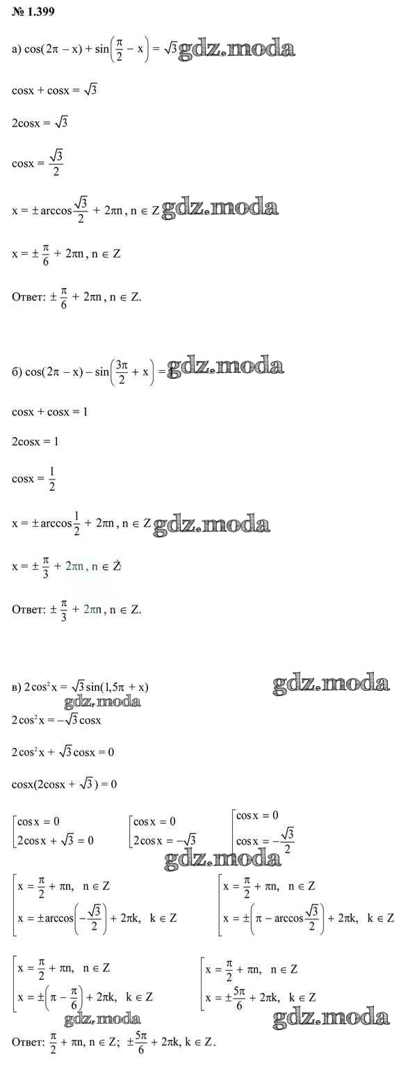 ОТВЕТ на задание № 1.399 Учебник по Алгебре 10 класс Арефьева