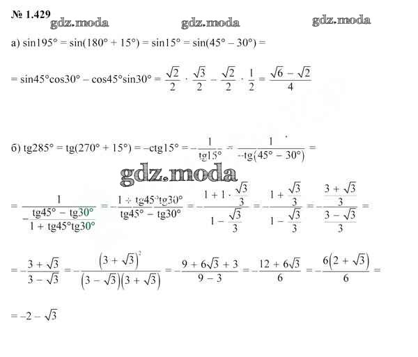 ОТВЕТ на задание № 1.429 Учебник по Алгебре 10 класс Арефьева