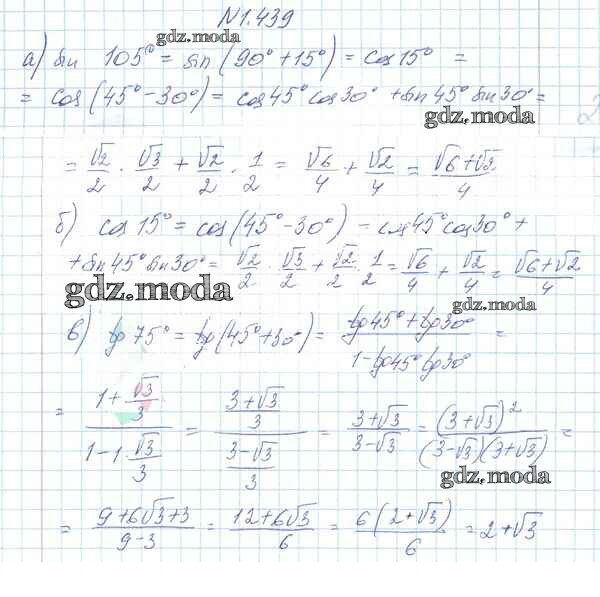 ОТВЕТ на задание № 1.439 Учебник по Алгебре 10 класс Арефьева
