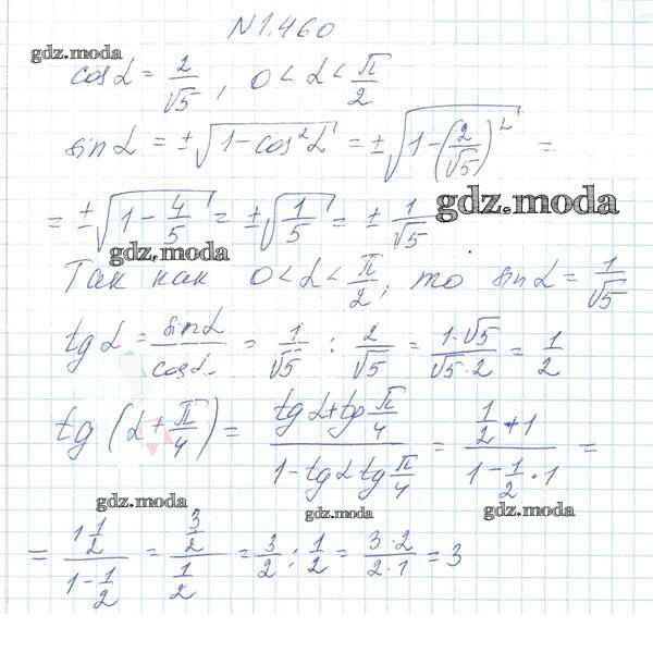 ОТВЕТ на задание № 1.460 Учебник по Алгебре 10 класс Арефьева