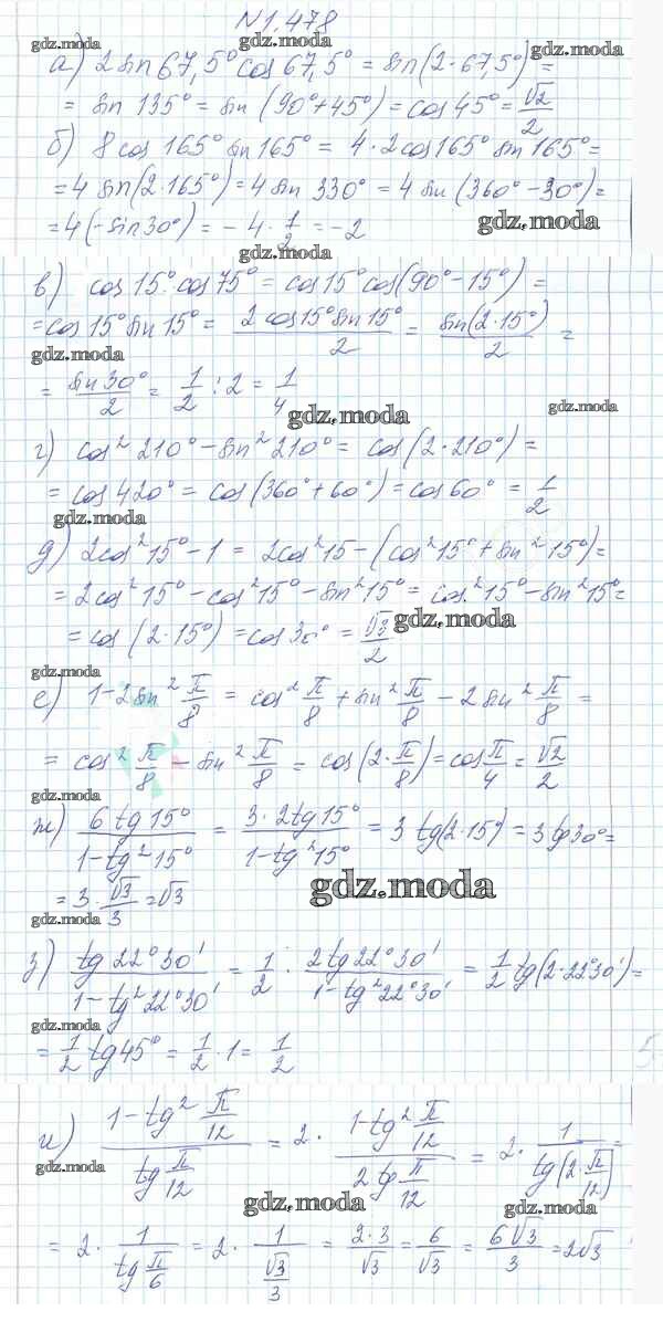 ОТВЕТ на задание № 1.478 Учебник по Алгебре 10 класс Арефьева