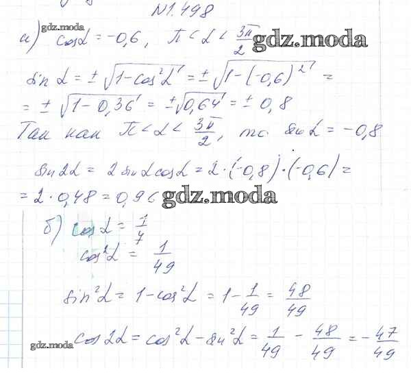 ОТВЕТ на задание № 1.498 Учебник по Алгебре 10 класс Арефьева