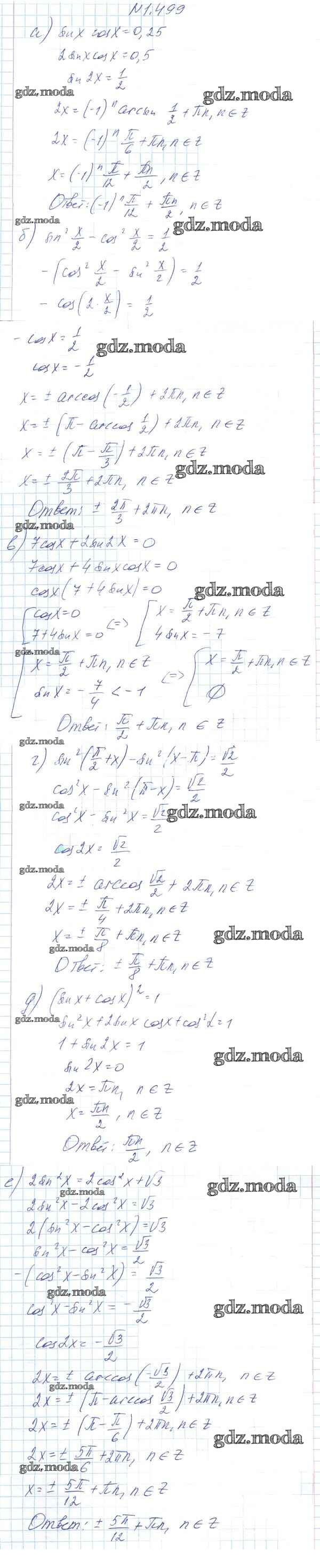 ОТВЕТ на задание № 1.499 Учебник по Алгебре 10 класс Арефьева