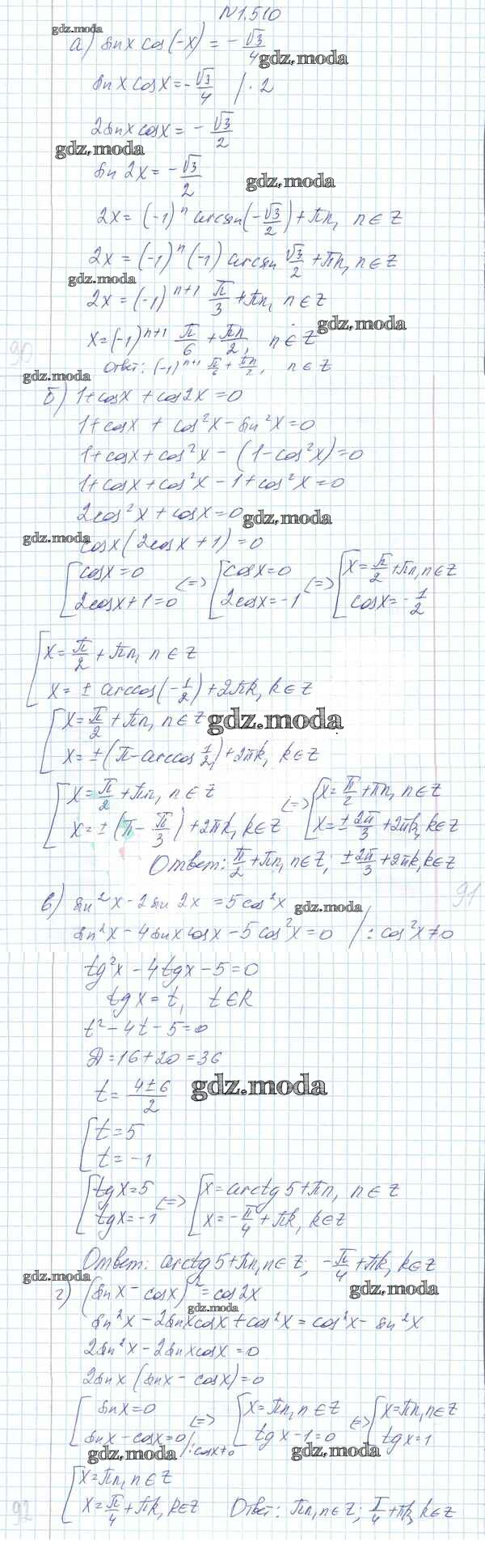 ОТВЕТ на задание № 1.510 Учебник по Алгебре 10 класс Арефьева