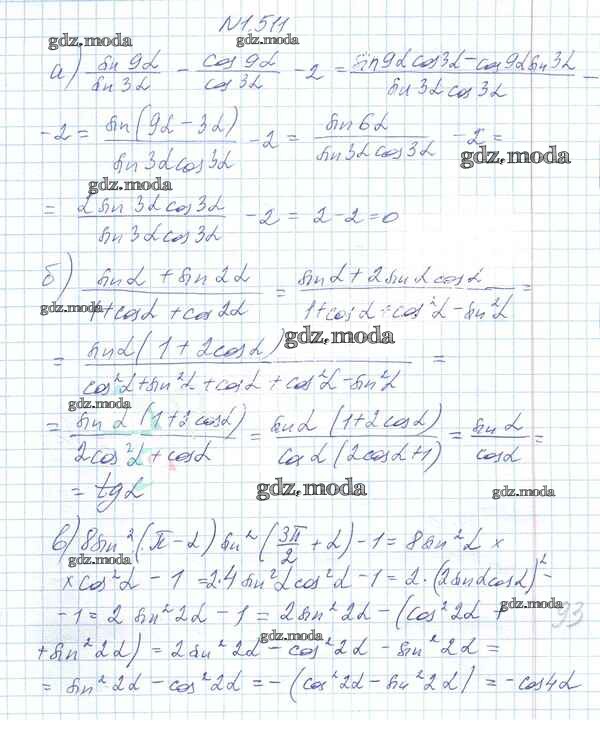 ОТВЕТ на задание № 1.511 Учебник по Алгебре 10 класс Арефьева