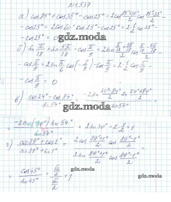 ОТВЕТ на задание № 1.537 Учебник по Алгебре 10 класс Арефьева