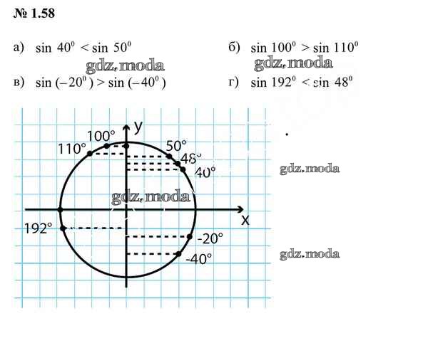 ОТВЕТ на задание № 1.58 Учебник по Алгебре 10 класс Арефьева