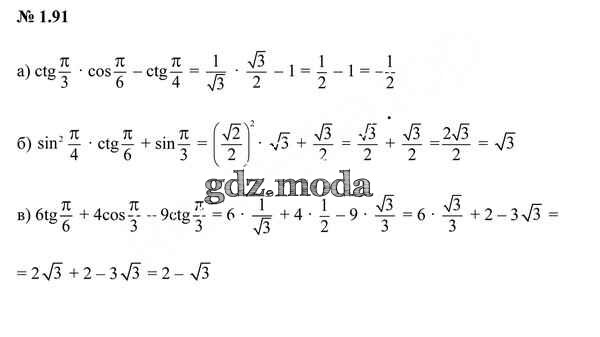 ОТВЕТ на задание № 1.91 Учебник по Алгебре 10 класс Арефьева