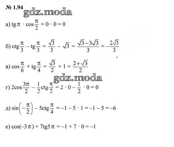 ОТВЕТ на задание № 1.94 Учебник по Алгебре 10 класс Арефьева