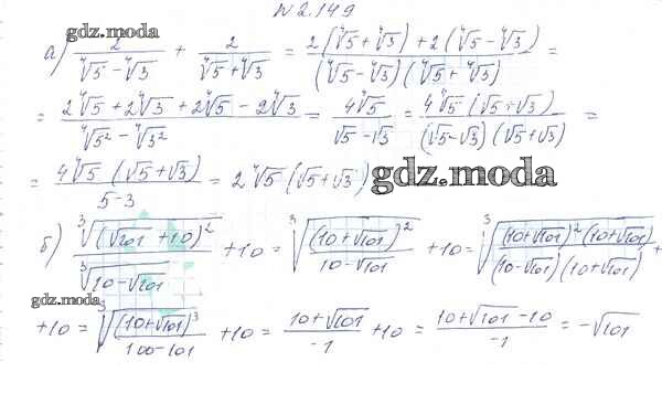 ОТВЕТ на задание № 2.149 Учебник по Алгебре 10 класс Арефьева