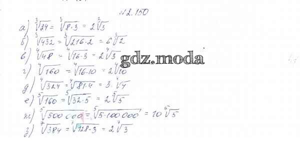 ОТВЕТ на задание № 2.150 Учебник по Алгебре 10 класс Арефьева