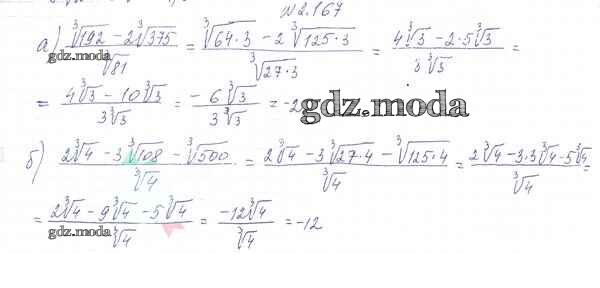 ОТВЕТ на задание № 2.167 Учебник по Алгебре 10 класс Арефьева